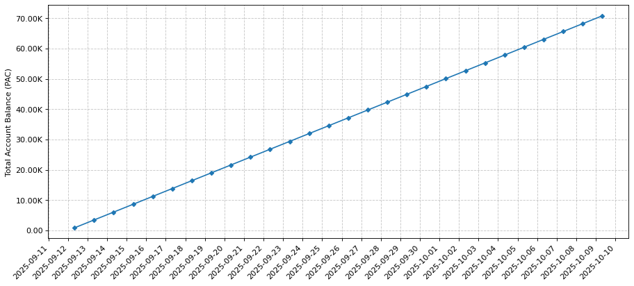 This visualizes the total balance change across these 100 new foundation addresses.
